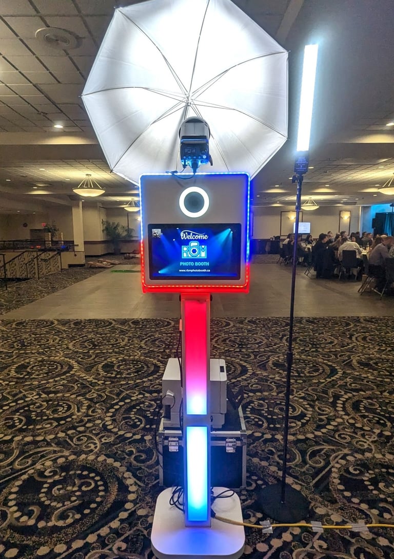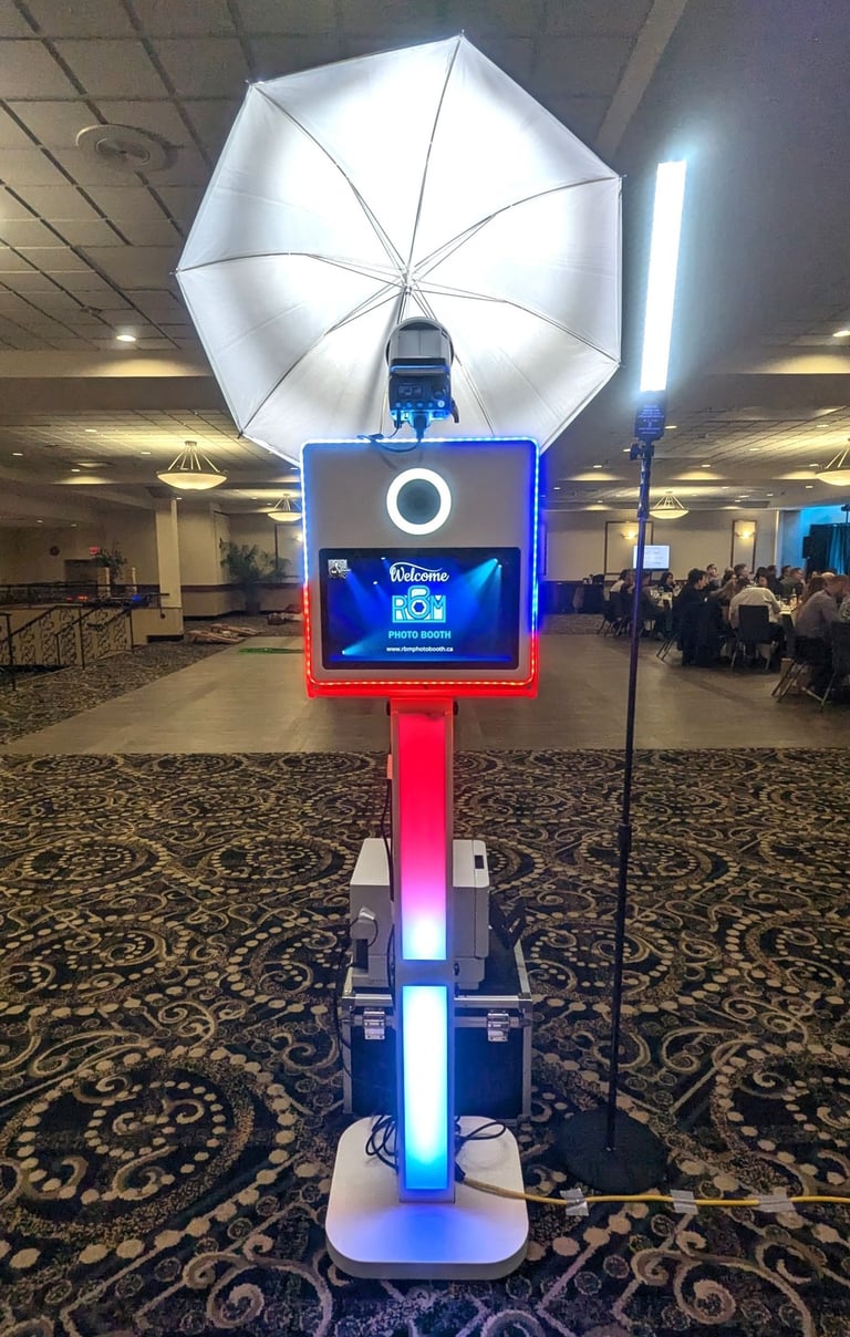 Our cutting-edge open-air photo booth system boasts a sleek touch screen, a modern DSLR camera, and professional studio lighting. This setup ensures that more guests can comfortably fit into each shot, capturing all the fun and memories!